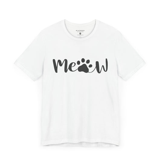 Meow Script T-Shirt – Minimalist Cat Lover Tee with Paw Print | Mr. Fuzzywhiskers