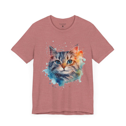 Watercolor Cat Face T-Shirt – Artistic Splash Print for Cat Lovers | Mr. Fuzzywhiskers