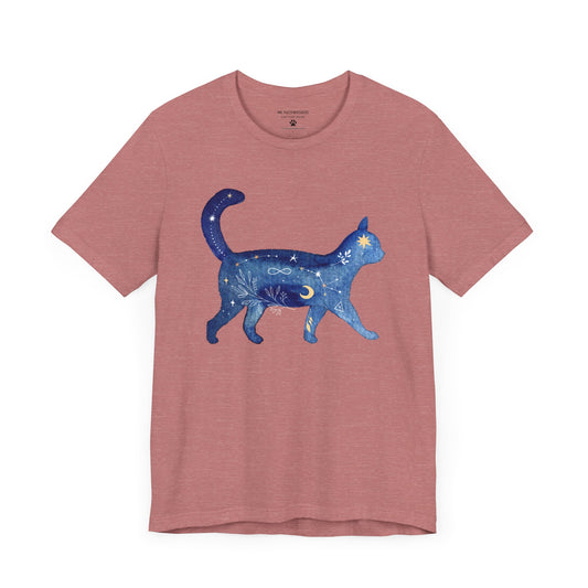 Blue Celestial Cat T-Shirt – Mystical Galaxy Cat Silhouette | Mr. Fuzzywhiskers
