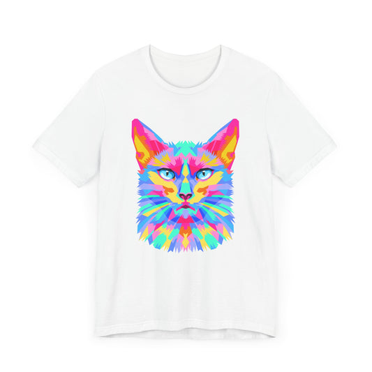 Technicolor Cat Face T-Shirt – Bold Cubist Rainbow Cat Art | Mr. Fuzzywhiskers