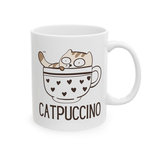 Catpuccino Mug - Cute Cat and Coffee Lover Design in White