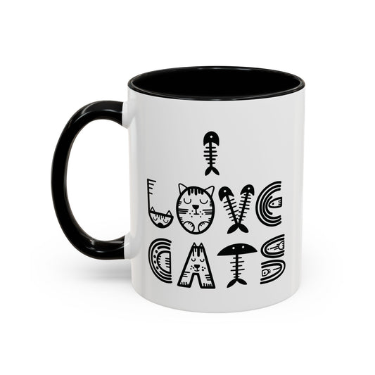 I Love Cats Mug - Fun Cat-Themed Design with Fishbone Accents