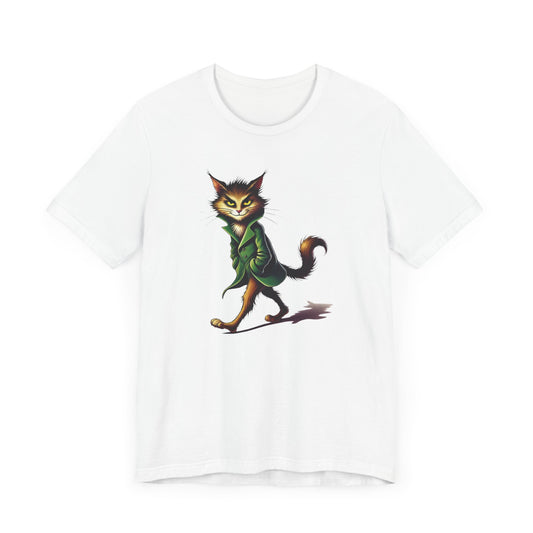 Cool Cat in Green Coat T-Shirt - Mysterious Feline Style