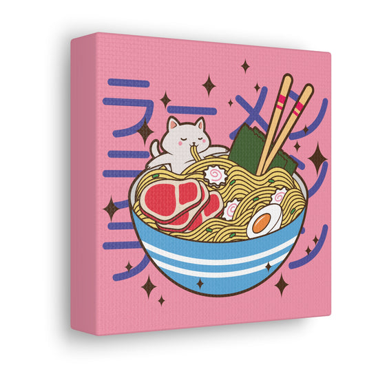 Cat in Ramen Bowl Canvas - Whimsical Japanese-Inspired Wall Art