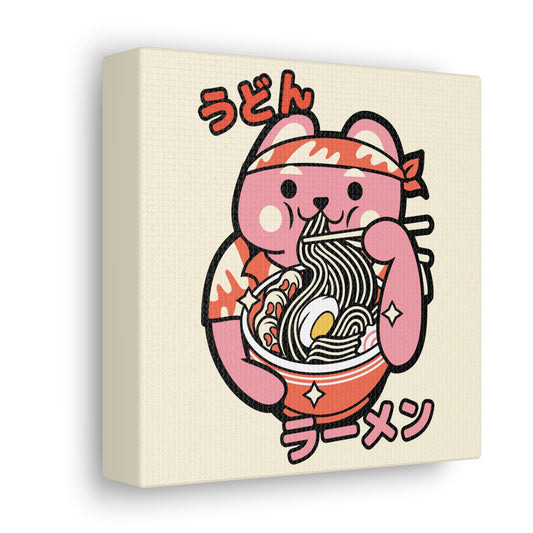 Bandana Cat Eating Ramen Canvas - Fun Japanese-Inspired Wall Art