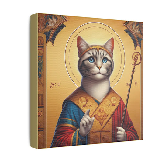 Golden Cat Saint Canvas - Elegant Feline-Inspired Sacred Art