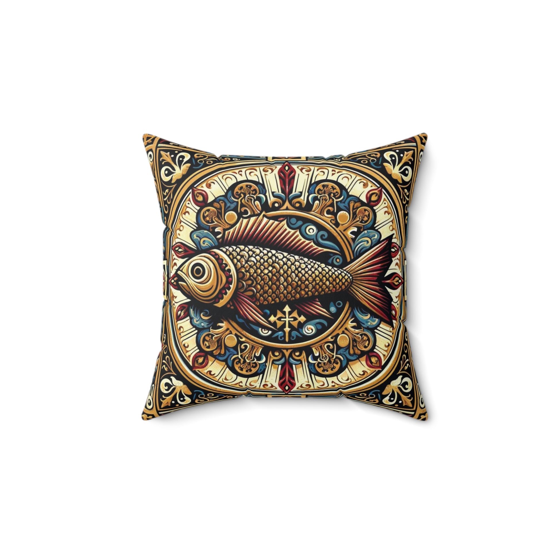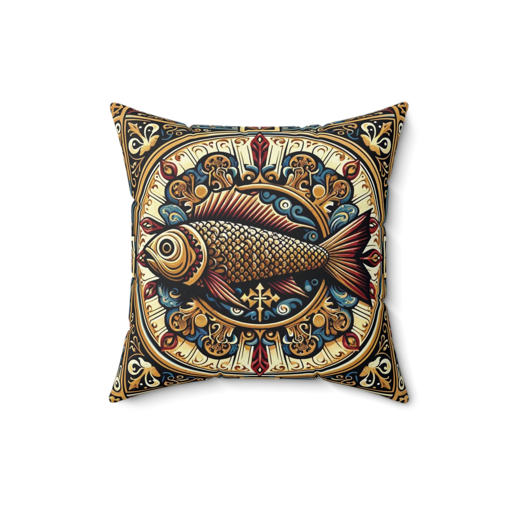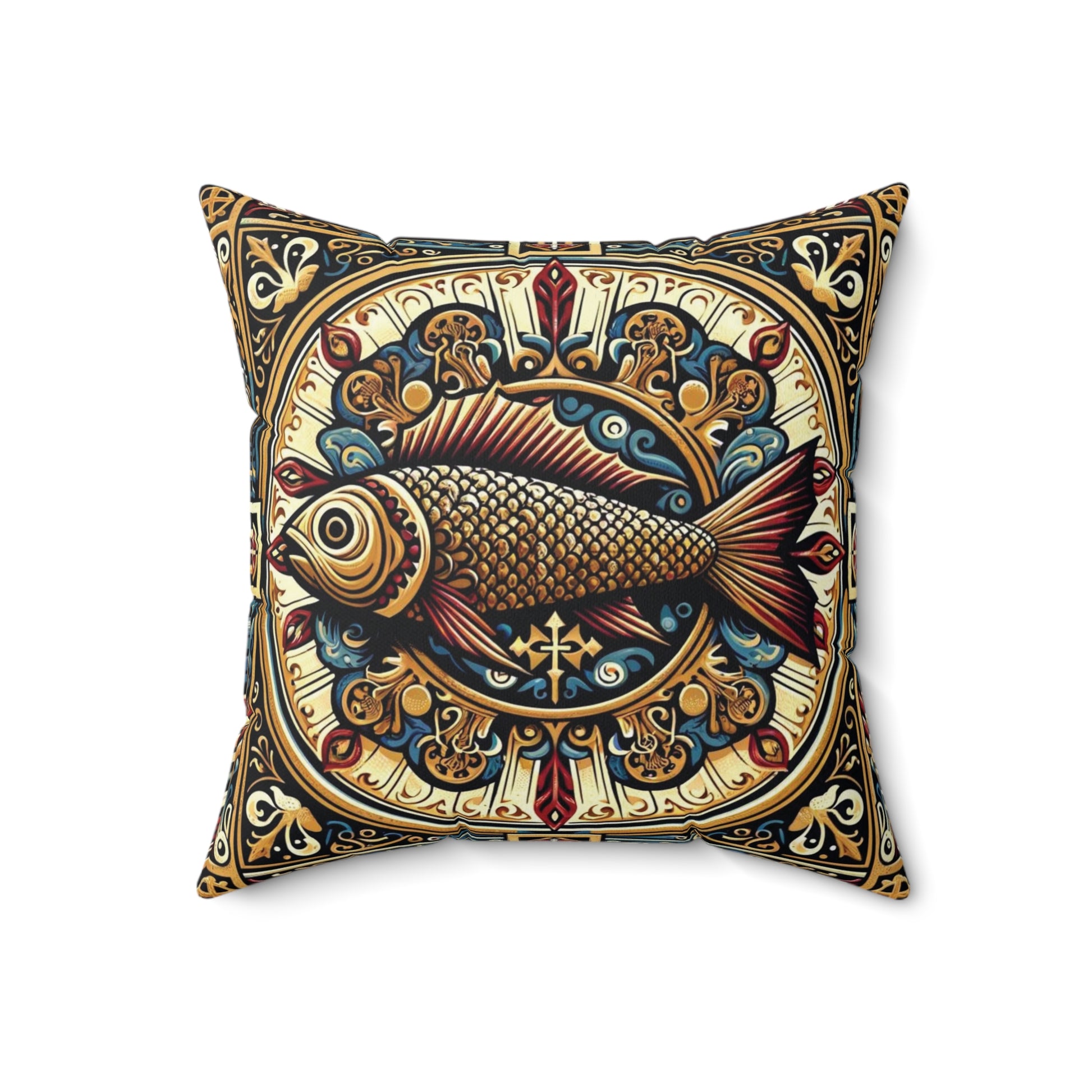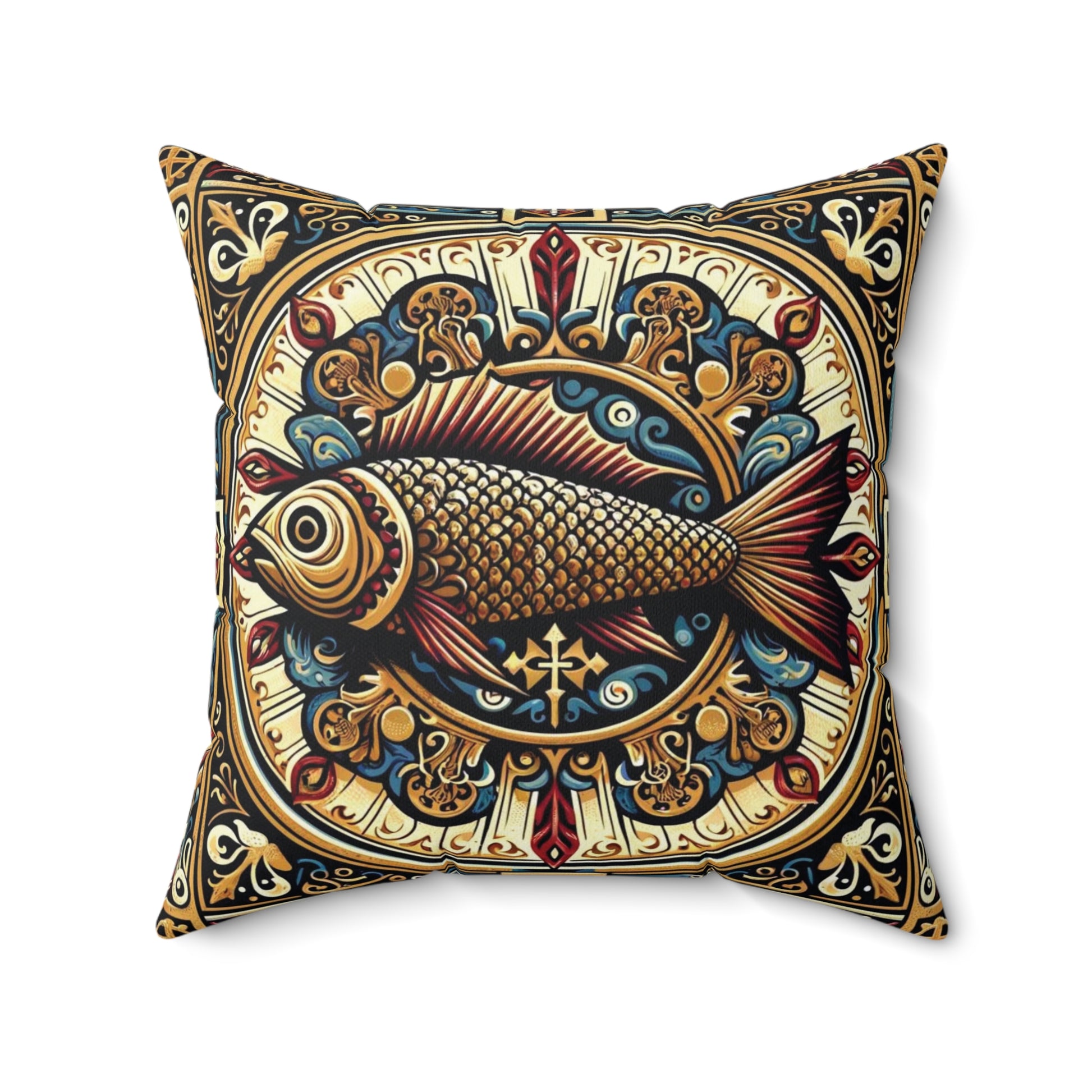 Elevate your home decor with the majestic 'Golden Cat Ikon' Pillow from Mr. Fuzzywhiskers. Featuring a noble feline adorned in radiant gold and red robes, complete with a golden halo and intricate staff, this design exudes divine elegance and regal charm. The double-sided print includes a matching complementary pattern on the back for a seamless look. Made with a 100% polyester cover and a plush 100% polyester pillow insert, this pillow combines sophistication and comfort. The concealed zipper adds a refined finish. Available in four sizes, it’s the perfect accent for your sofa, bed, or favorite chair. Add this heavenly feline masterpiece to your collection today!