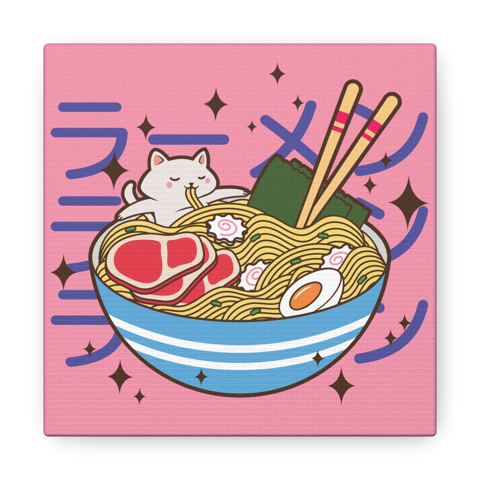 Cat in Ramen Bowl Canvas - Whimsical Japanese-Inspired Wall Art