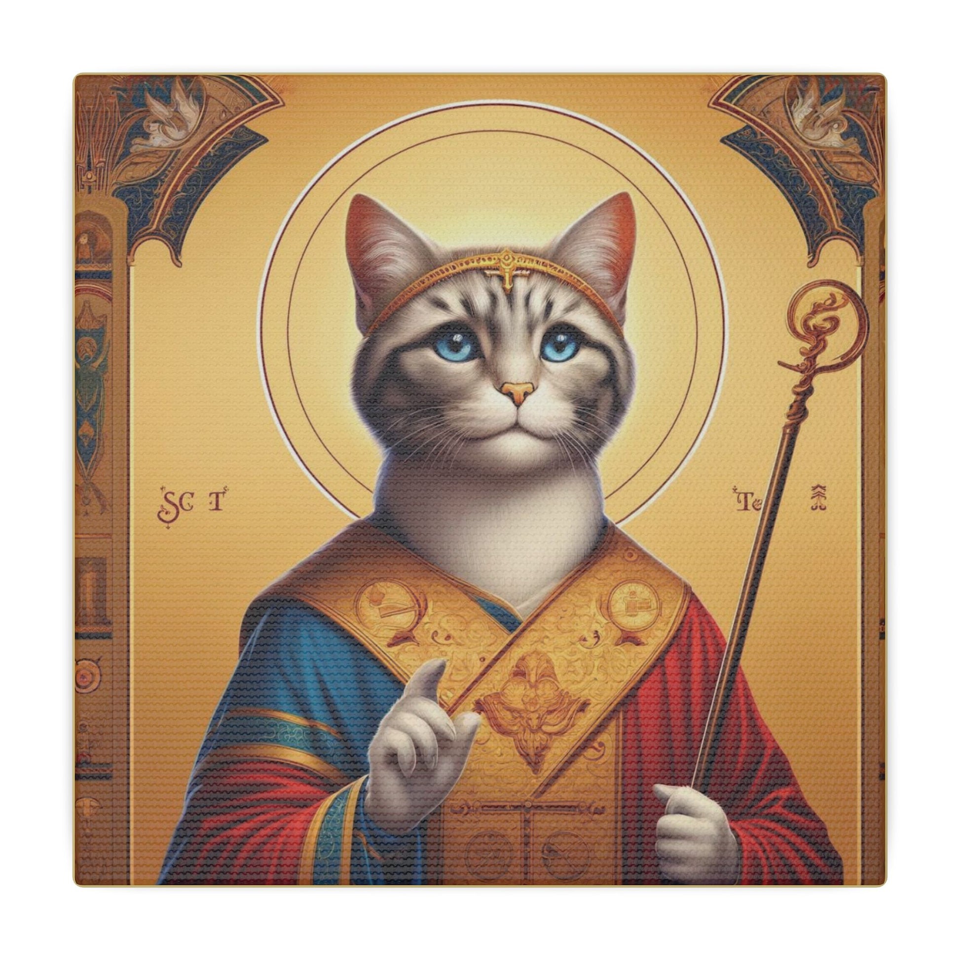 Golden Cat Saint Canvas - Elegant Feline-Inspired Sacred Art
