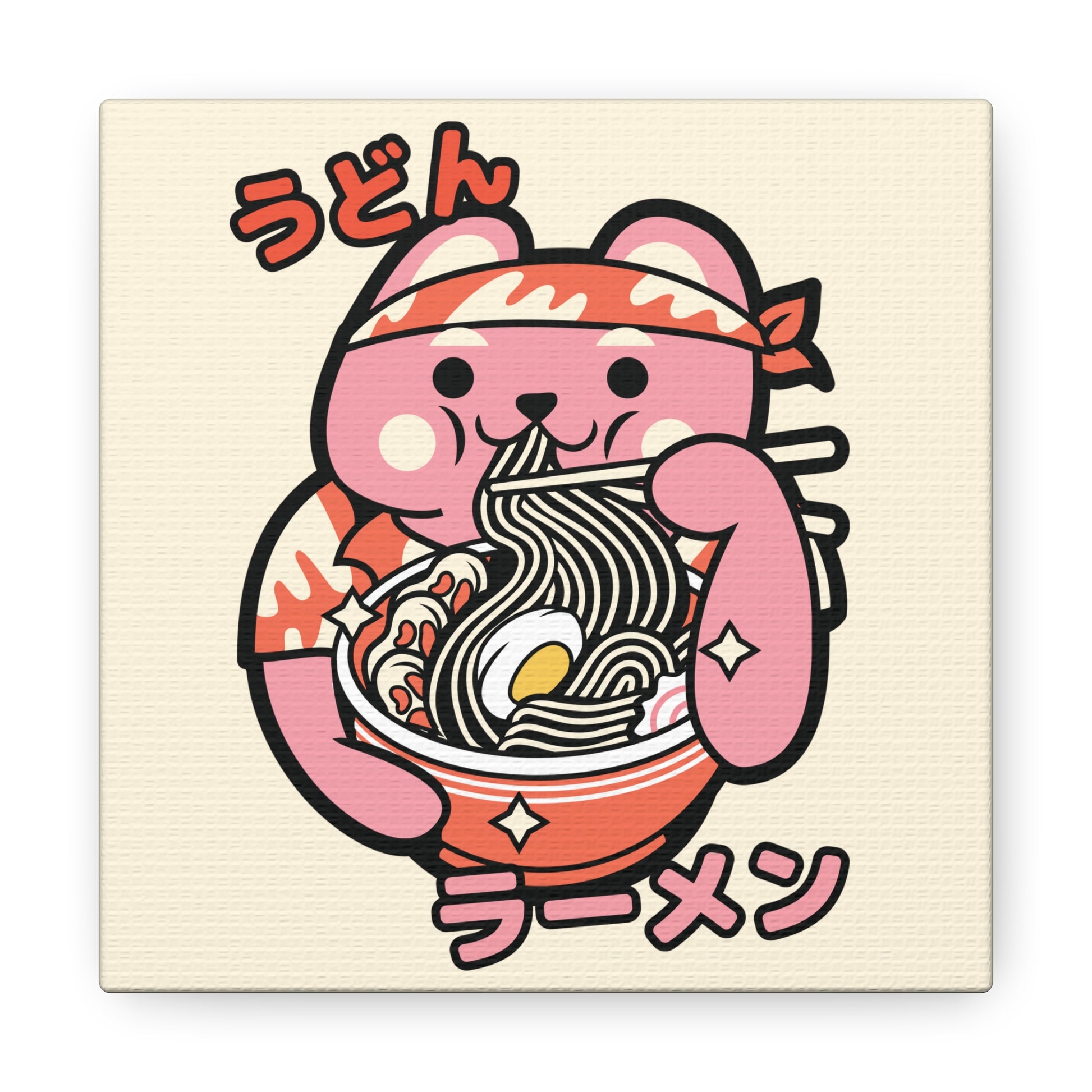 Bandana Cat Eating Ramen Canvas - Fun Japanese-Inspired Wall Art